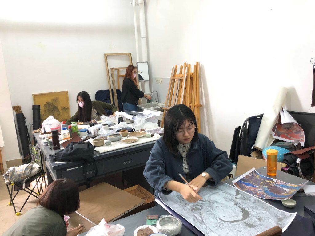 The place Meine Wirkungsstätte – die Academy of Fine Arts Xi’an / China Ausgewählte Einblicke in die dortigen Werkstätten der Akademie, wie chinesische Malerei, Ölmalerei, Druckgrafik, Bühnenbild und Gips-Bildhauerei